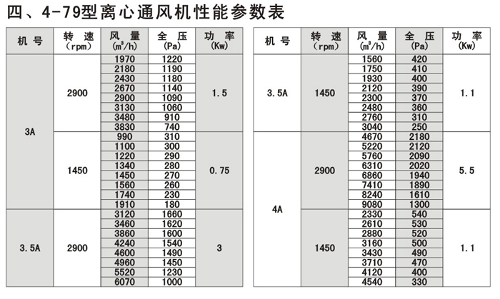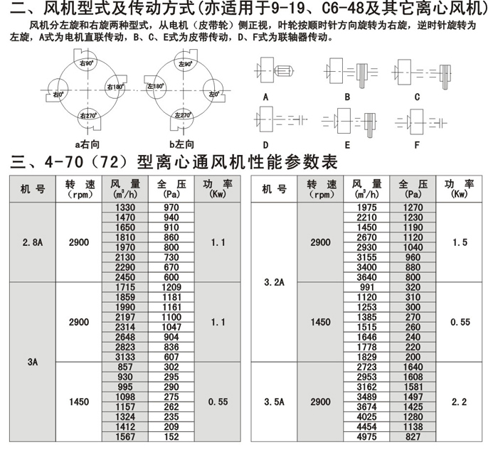 注:F4-72/79為防腐型離心風機,用于輸送有腐蝕性的氣體,用玻璃鋼為制作材料。