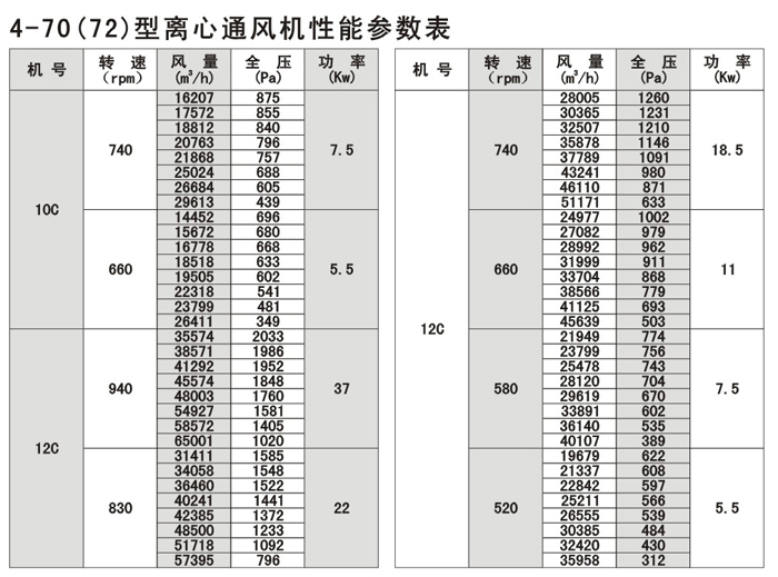 B4-72/79為防爆型離心風機,用于輸送易燃的易爆的氣體,電機配用隔爆電機,防爆要求較低的采用鐵制葉輪,防爆要求較高的使用鋁合金葉輪。